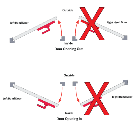 Lever inside only suits Left Hand doors (Not compatible with external access cylinder).