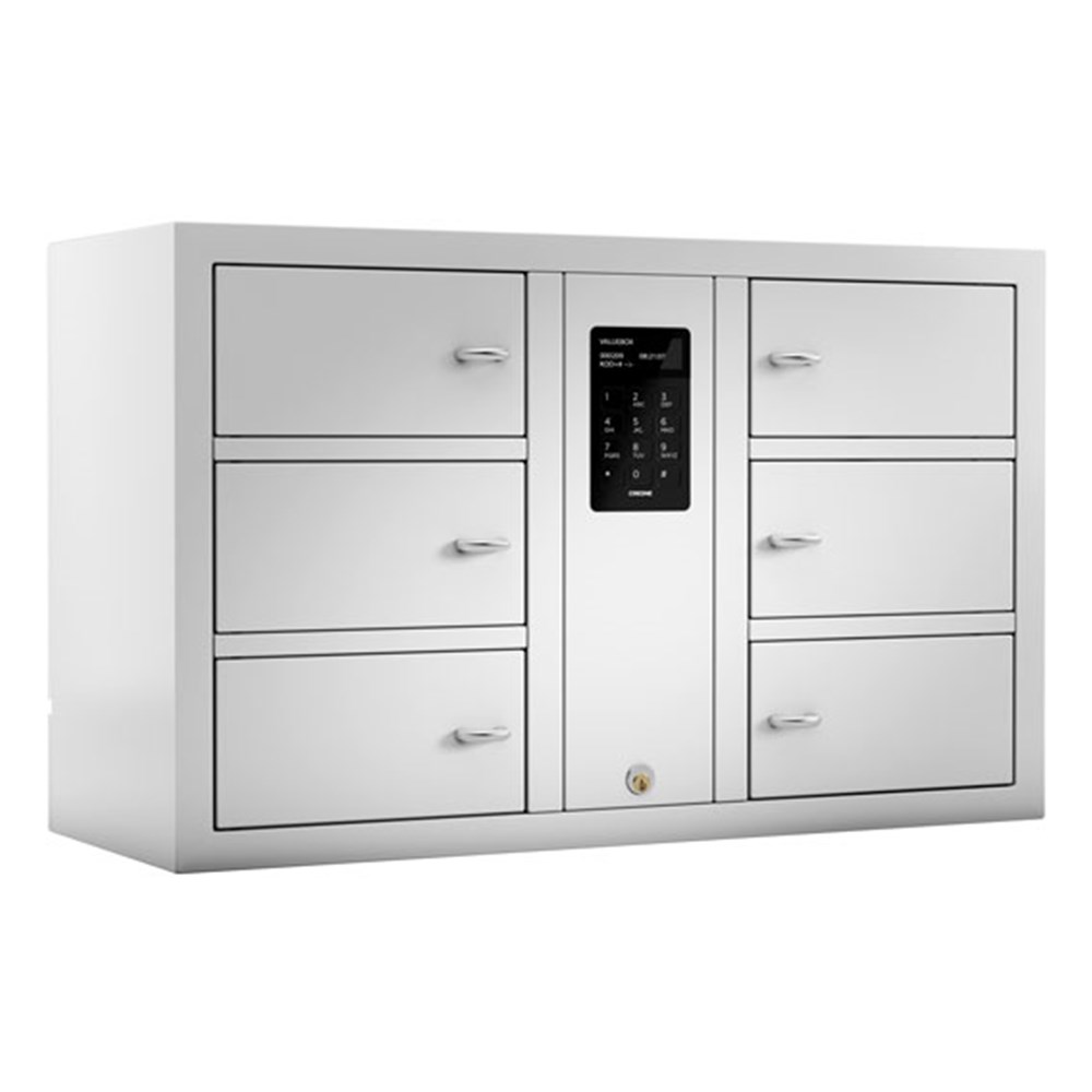 Up to 15 expansion value boxes can be added on in any combination, which means that you can have up to 96 compartments in same system of handling of valuables, all managed by the same keypad.