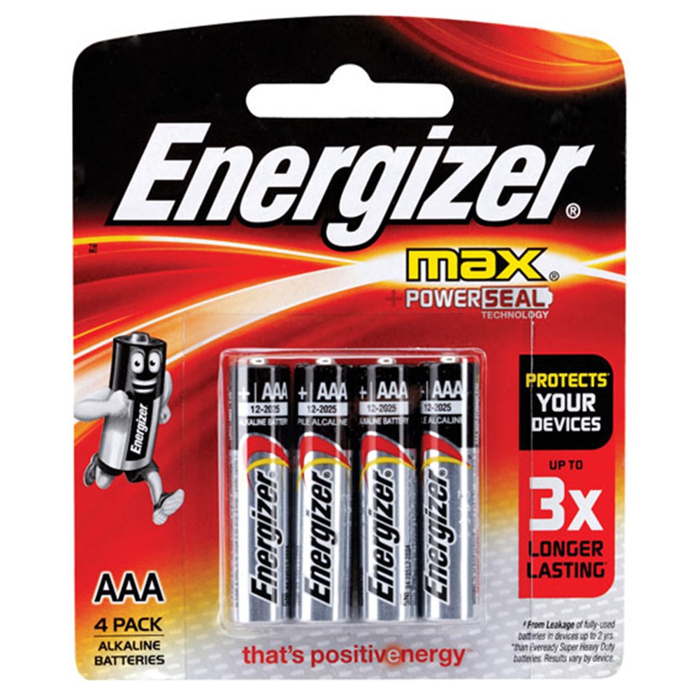 Energizer® max® AAA batteries.