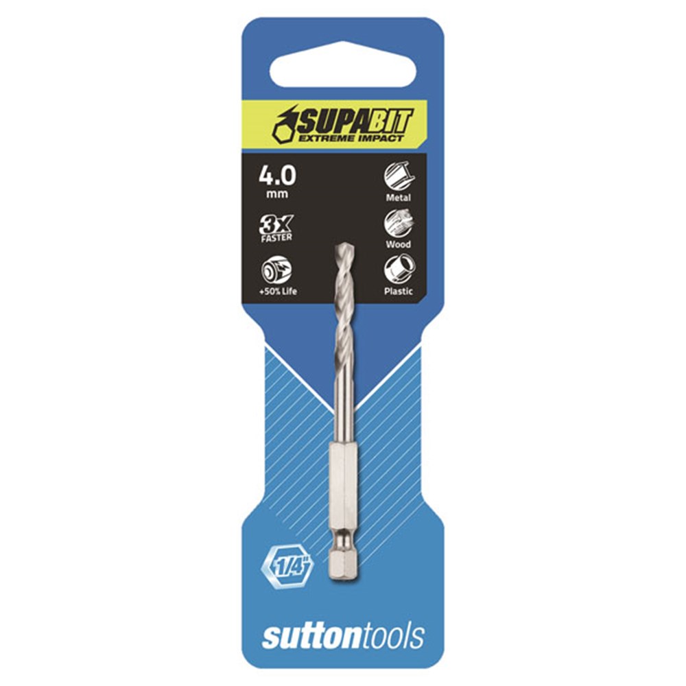 Sutton Tools Supabits are developed for use with the high torque output of an impact driver and are suitable for general purpose use in metal, timber and plastics.