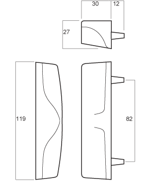 Whitco 6° offset outer pull handle, without cylinder hole.